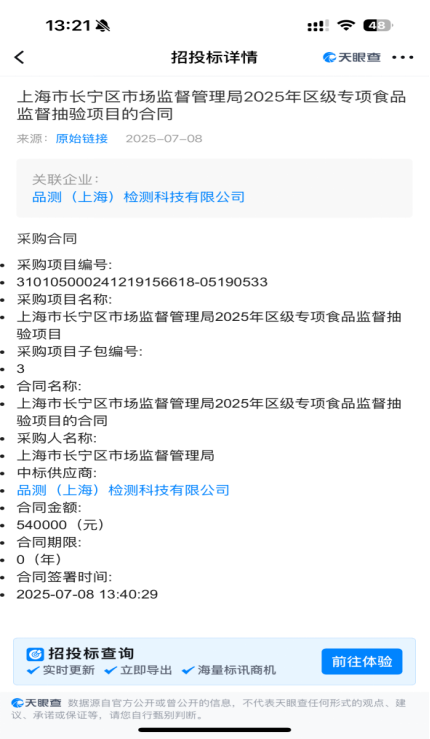 这个品测和绿捷一样,表面看起来平平无奇,但背地里,他们还负责上海多家学校的校服检测、饮用水检测。甚至就连上海市市场监督管理局,抽查市面上卖的食品是不是有问题,也是靠他们。